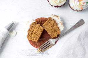 Our gluten-free sweet potato cupcakes are topped with a homemade cream cheese buttercream.